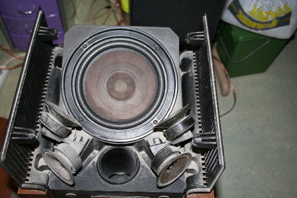 En hier de tweede woofer uit de kast. Denk erom: reviseer nooit alleen de 'onderste' of 'bovenste' woofer - reviseer ALLES! Beide woofers zijn bij de 601 van hetzelfde type.