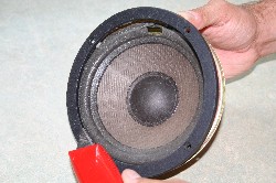![]() VERWIJDER DE OUDE RAND verwijder voorzichtig de oude rolrand. 'Schraap' met een 'Stanley mes' de woofer en het frame schoon. Werk rustig, nauwkeurig en voorzichtig. Pas met name op bij het schoonmaken van de rand van de woofer. Probeer de oppervlakten zo schoon mogelijk te krijgen. Het frame van de woofer moet 100% schoon zijn, anders zal de lijm niet helemaal goed hechten. Voor het woofer membraan is dat vaak lastig te bereiken. Verwijder zoveel mogelijk zonder de woofer te beschadigen. Pas op de oude foam resten! Deze kunnen vervelende vlekken veroorzaken! Maak het metalen frame schoon met alcohol of een andere ontvettingsmiddel. | ||||||||