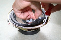 ![]() HAAL DE WOOFER UIT DE KAST. Neem de juiste schroevendraaier en haal de woofer uit de kast. Pas op dat je niet per ongeluk de woofer beschadigt! Maak de kabels los van de woofer en markeer de polariteit van de kabels. Het is heel belangrijk dat de kabels weer op dezelfde wijze worden aangesloten na de operatie. Als je de kabels moet 'los solderen' pas dan op dat je de terminals niet teveel verhit. | ||||||||